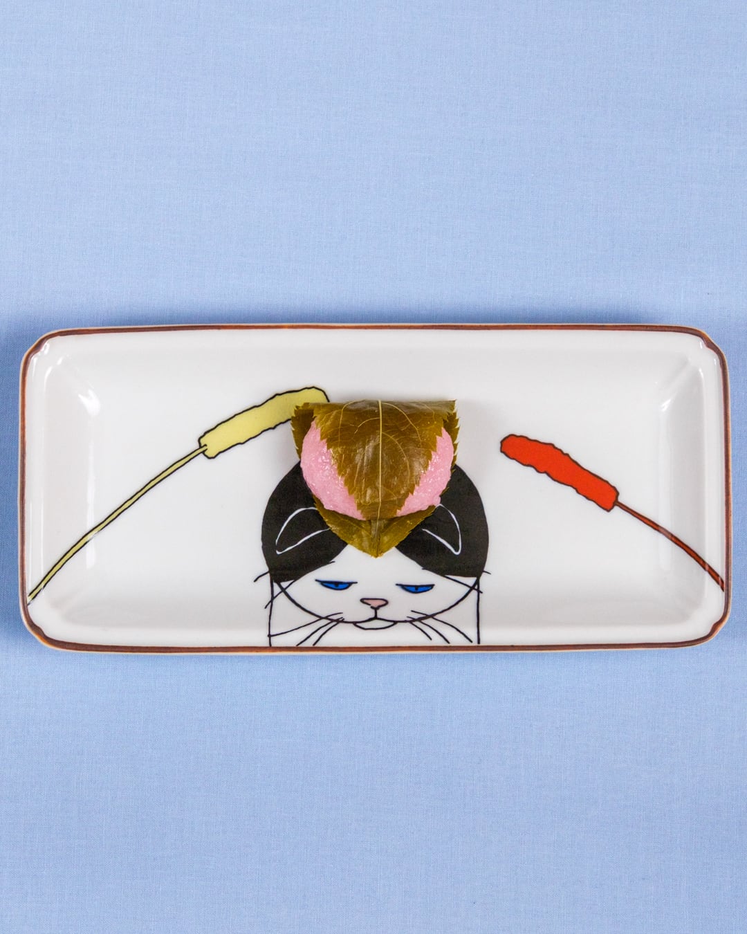 自由気ままな猫にジェラシーを感じている現代社会へお届けするネコ・ジェラシーシリーズ。こちらは猫じゃらしと八割れ猫の長皿。食材を盛り付けるとなんだかふてくされたような表情がより深まります。猫じゃらしで遊ぶ猫のように食事中のテンションもUPしちゃう楽しい食器です。