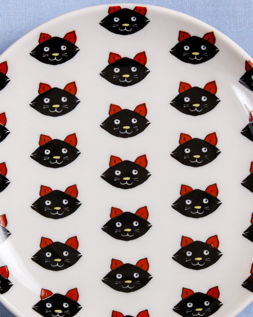 身近な存在ながら十二支には入れてもらえなかったかわいそうな猫ですが、実はクタニシールきっての人気者。そんな黒猫が整列している丸いお皿、ケーキやデザートにぴったりです◎