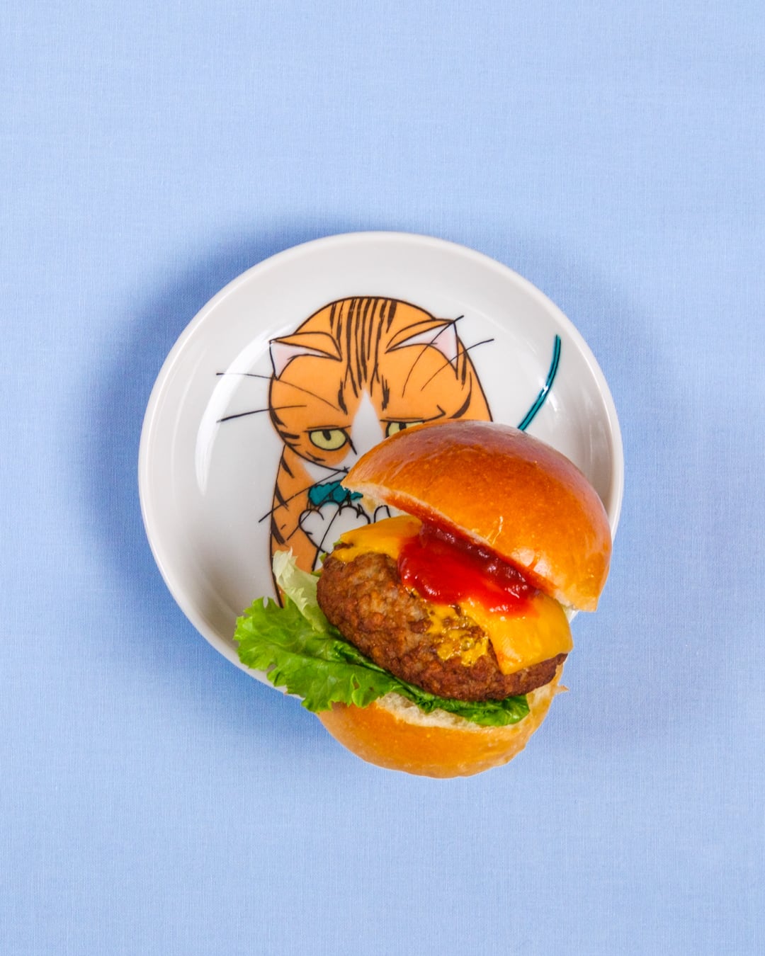 自由気ままな猫にジェラシーを感じている現代社会へお届けするネコ・ジェラシーシリーズ。こちらは取り皿にちょうど良いサイズのプレートです。フルーツやお菓子などを盛り付けて、目つきの悪いちゃとら柄の表情を楽しんでください。猫じゃらしで遊ぶ猫のように食事中のテンションもUPしちゃう楽しい食器です。
