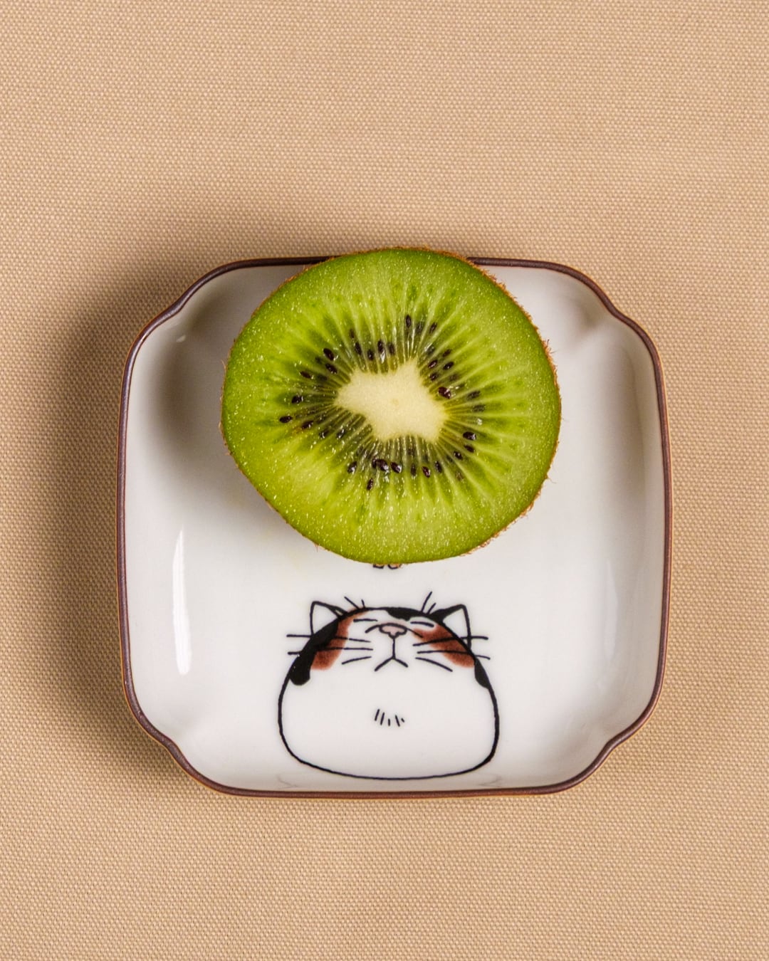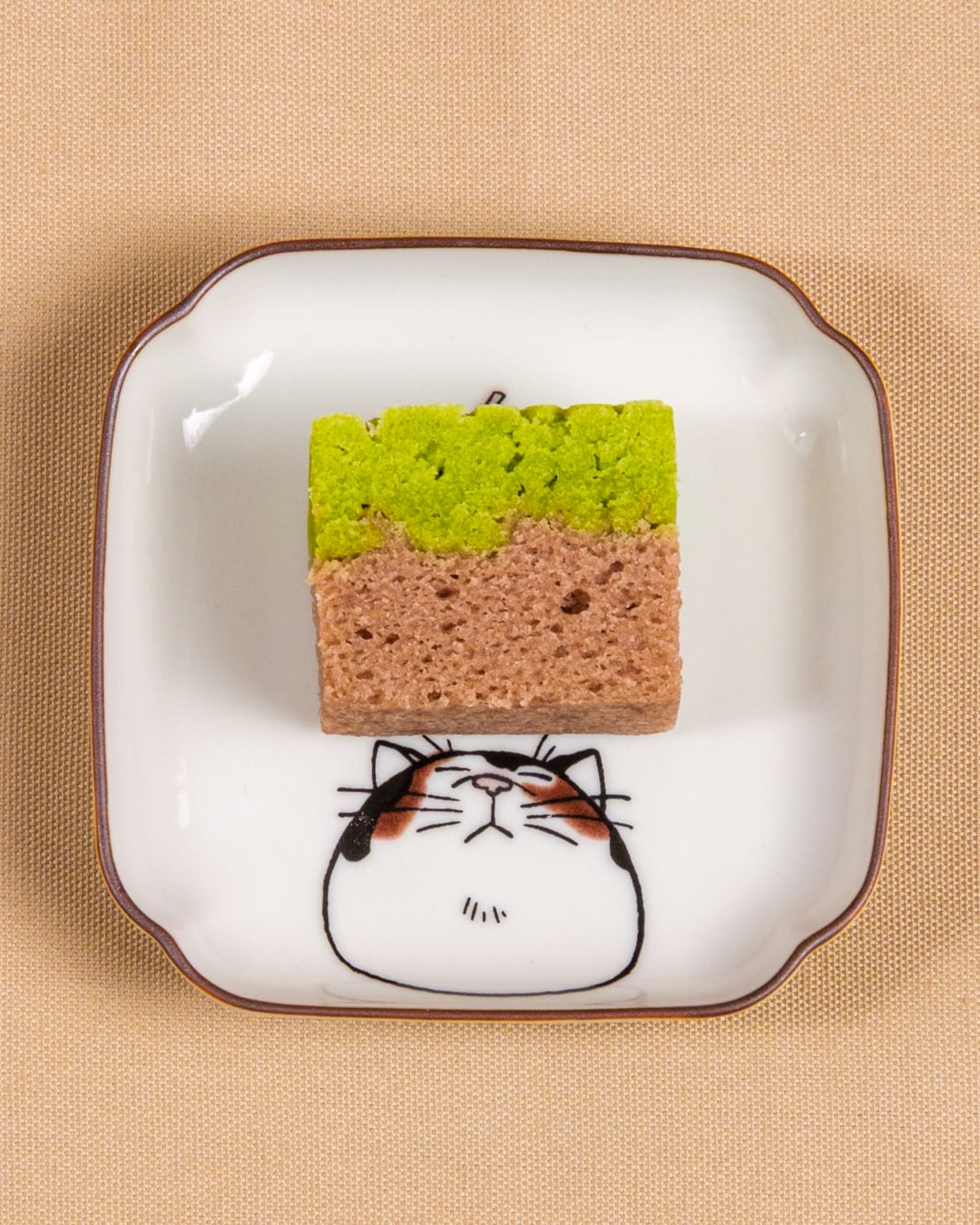 自由気ままな猫にジェラシーを感じている現代社会へお届けするネコ・ジェラシーシリーズ。こちらは鼻を近づけてにおいを嗅ぐ三毛猫の角小皿。お菓子やおかずは猫の顔をさけて載せるとかわいく楽しめます。猫じゃらしで遊ぶ猫のように食事中のテンションもUPしちゃう楽しい食器です。