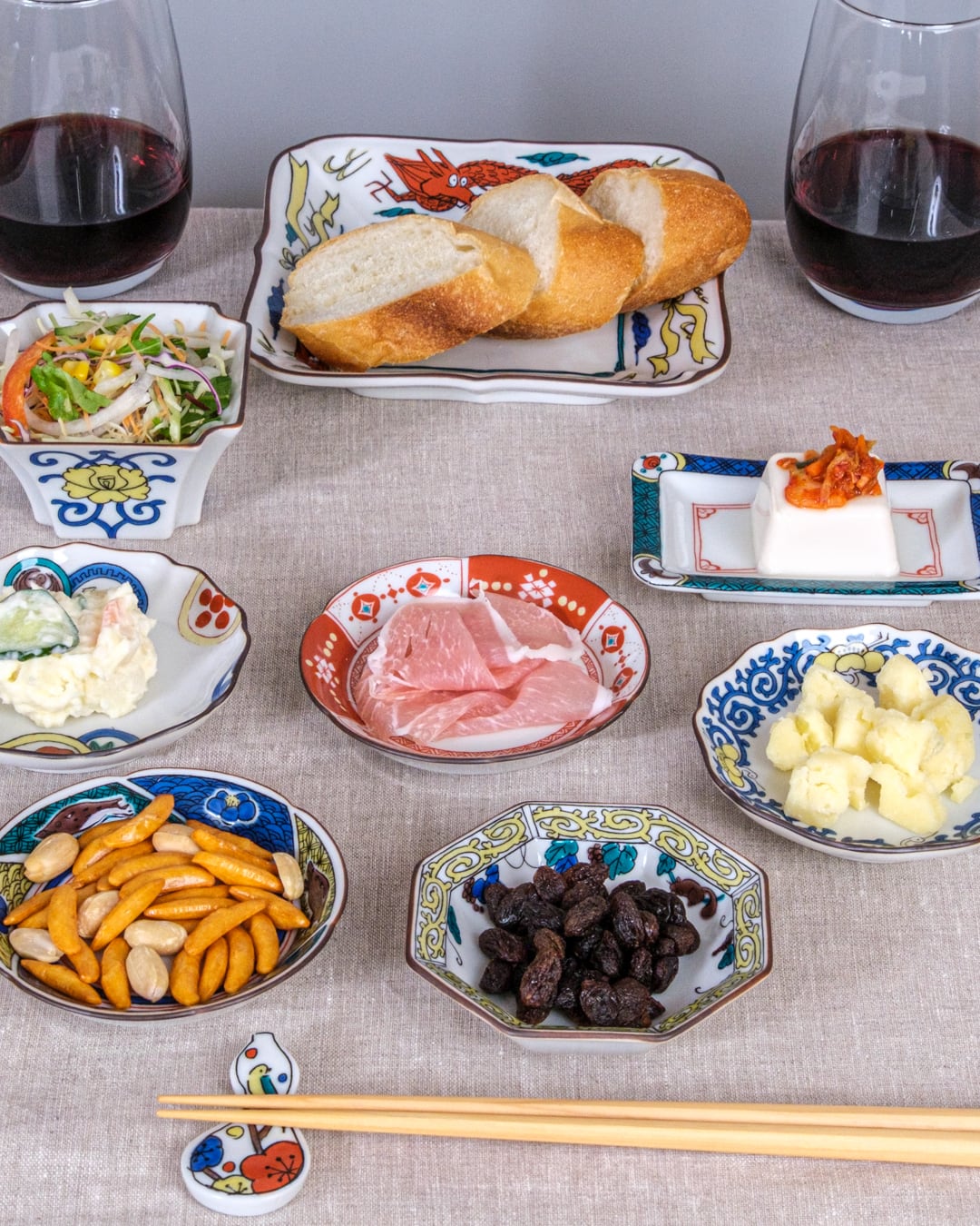 和食器の特徴はなんと言っても多種多彩さ。様々なかたちの和食器はテーブルに変化を持たせ、伝統的で少しゆるい絵柄が立派なフレームのように料理を引き立てます。九谷焼の伝統的な絵柄をお楽しみください。