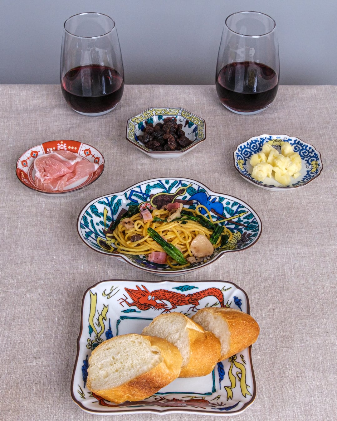 和食器の特徴はなんと言っても多種多彩さ。様々なかたちの和食器はテーブルに変化を持たせ、伝統的で少しゆるい絵柄が立派なフレームのように料理を引き立てます。九谷焼の伝統的な絵柄をお楽しみください。