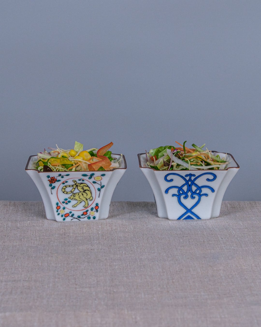 和食器の特徴はなんと言っても多種多彩さ。様々なかたちの和食器はテーブルに変化を持たせ、伝統的で少しゆるい絵柄が立派なフレームのように料理を引き立てます。九谷焼の伝統的な絵柄をお楽しみください。