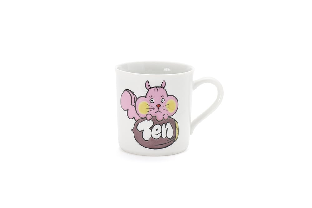 KUTANI SEAL10周年記念キャラクターのリス・ペク太郎のマグカップ。裏面と底にもペク太郎がいます。
