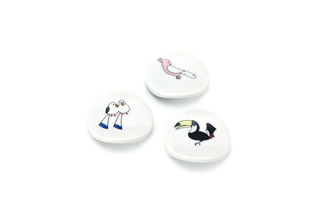 箸を置くとまるで小鳥が枝にとまったように見える箸置セット。ついつい使いたくなる箸置です。贈り物にも◎(クルマサカオウム・キンカチョウ・オオハシ)