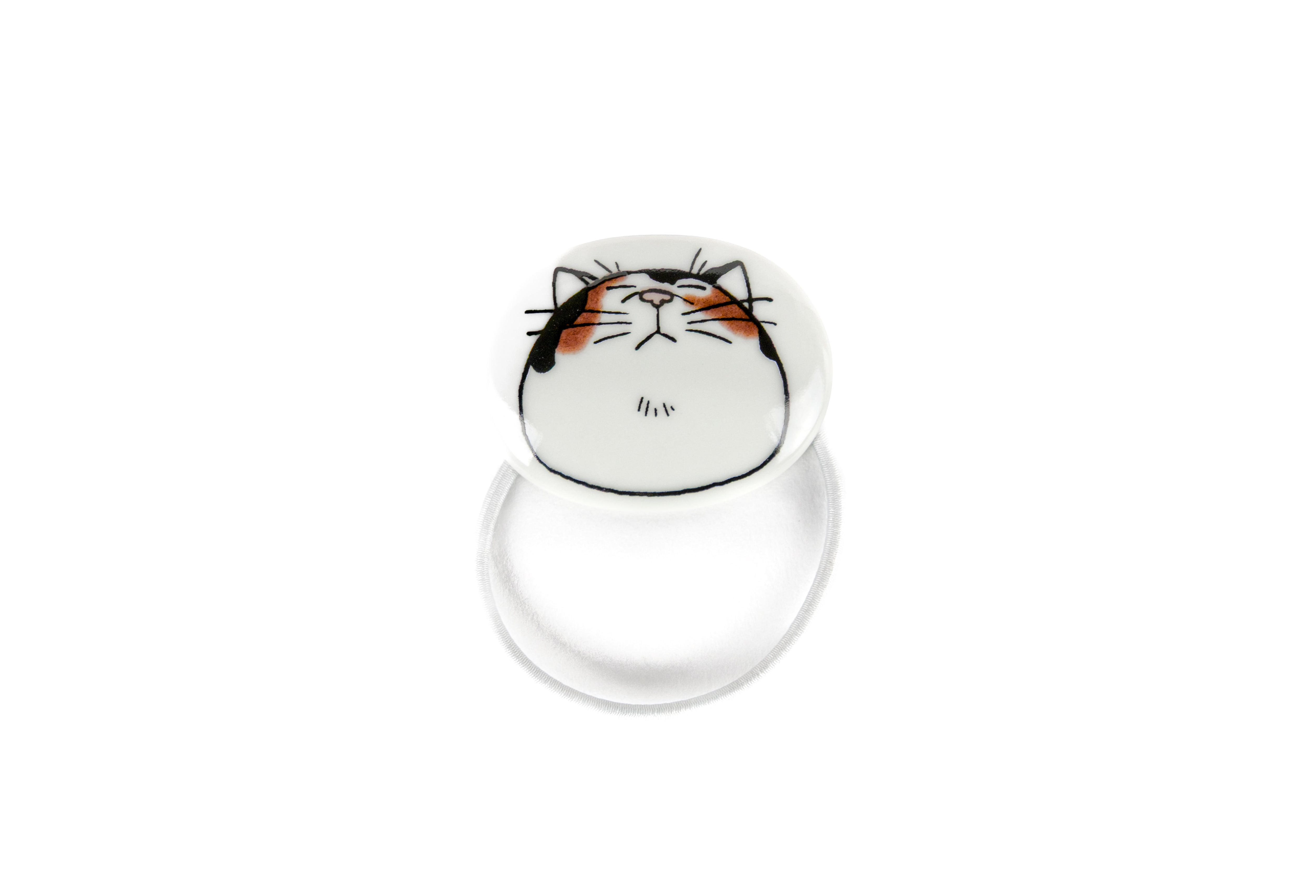 自由気ままな猫にジェラシーを感じている現代社会へお届けするネコ・ジェラシーシリーズ。こちらは鼻を近づけてにおいを嗅ぐ三毛猫のヘアゴム。シンプルなまとめ髪にもかわいいアクセントになり、髪を束ねる以外にも、手首につけてブレスレットにしたり、ストールを結んだり。あなたの髪や手首でネコを遊ばせて楽しんでください。