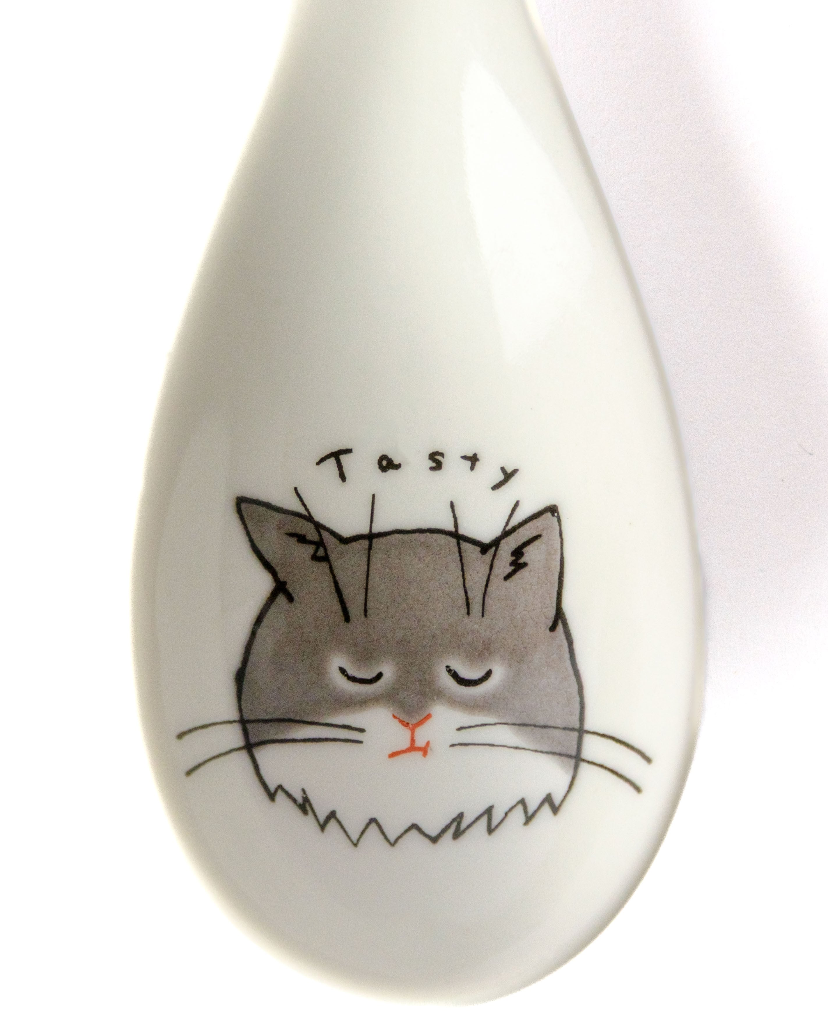 お豆腐やゼリーやプリン、中鉢と合わせてスープやお茶漬けに使うのもかわいいれんげです。満足そうなシェーテッド柄の猫の表情を楽しみながら食材をすくってください。