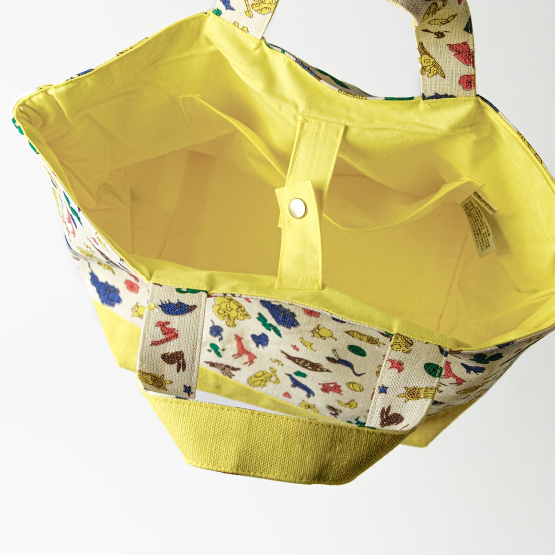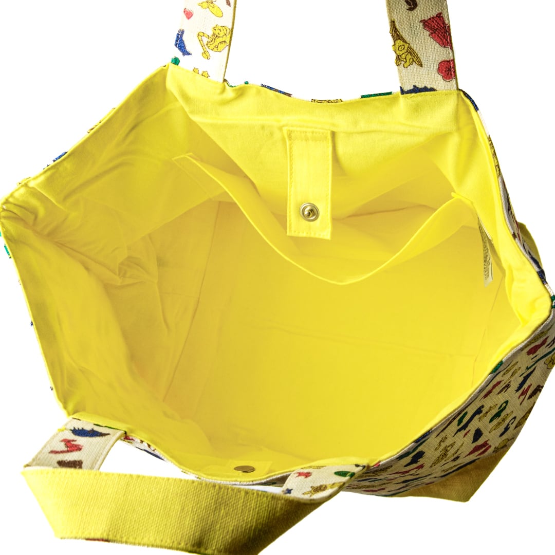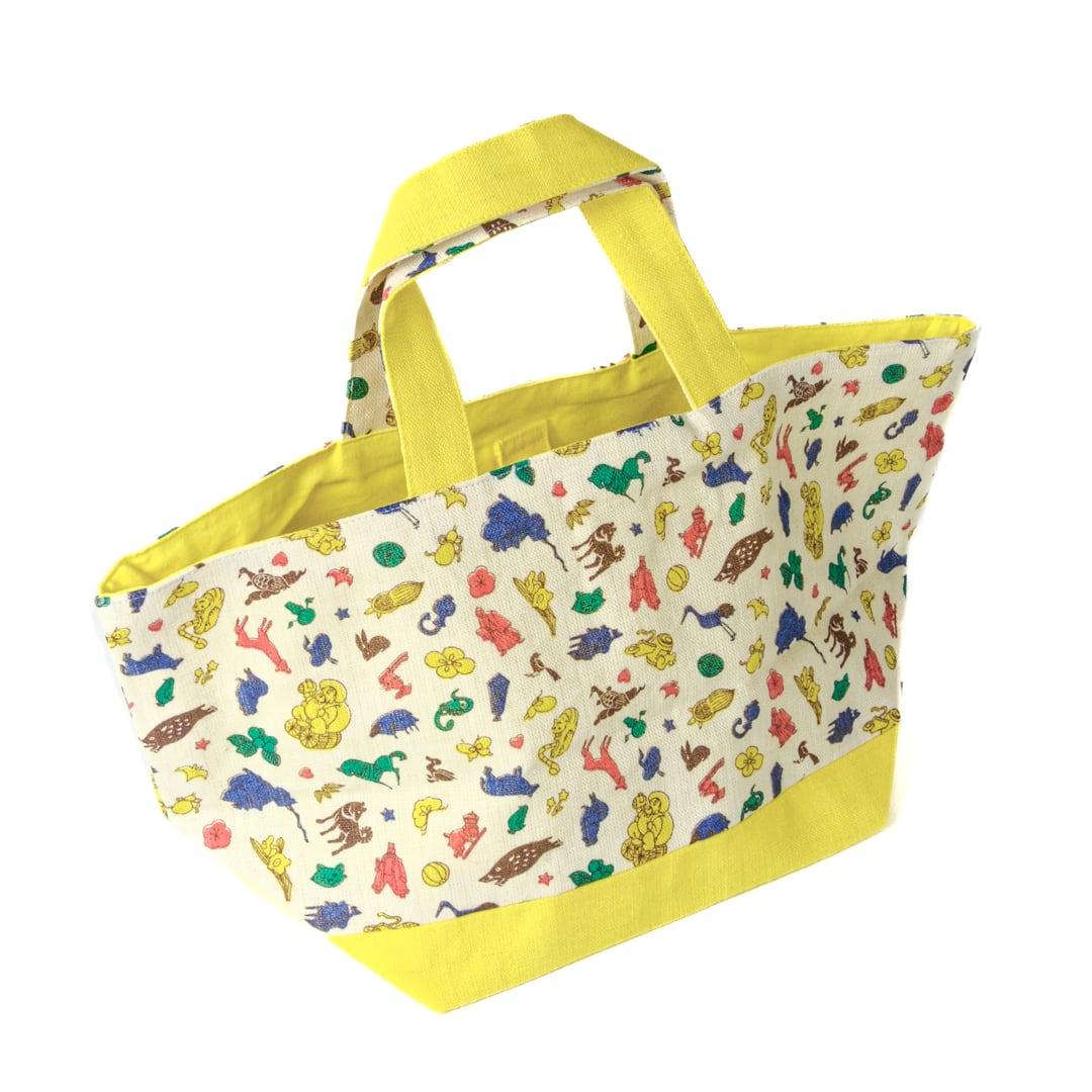 中川政七商店製・クタニシールオリジナルのトートバッグです。クタニシールで人気の絵柄が全員揃ったカラフルな散らし文様が華やかです。