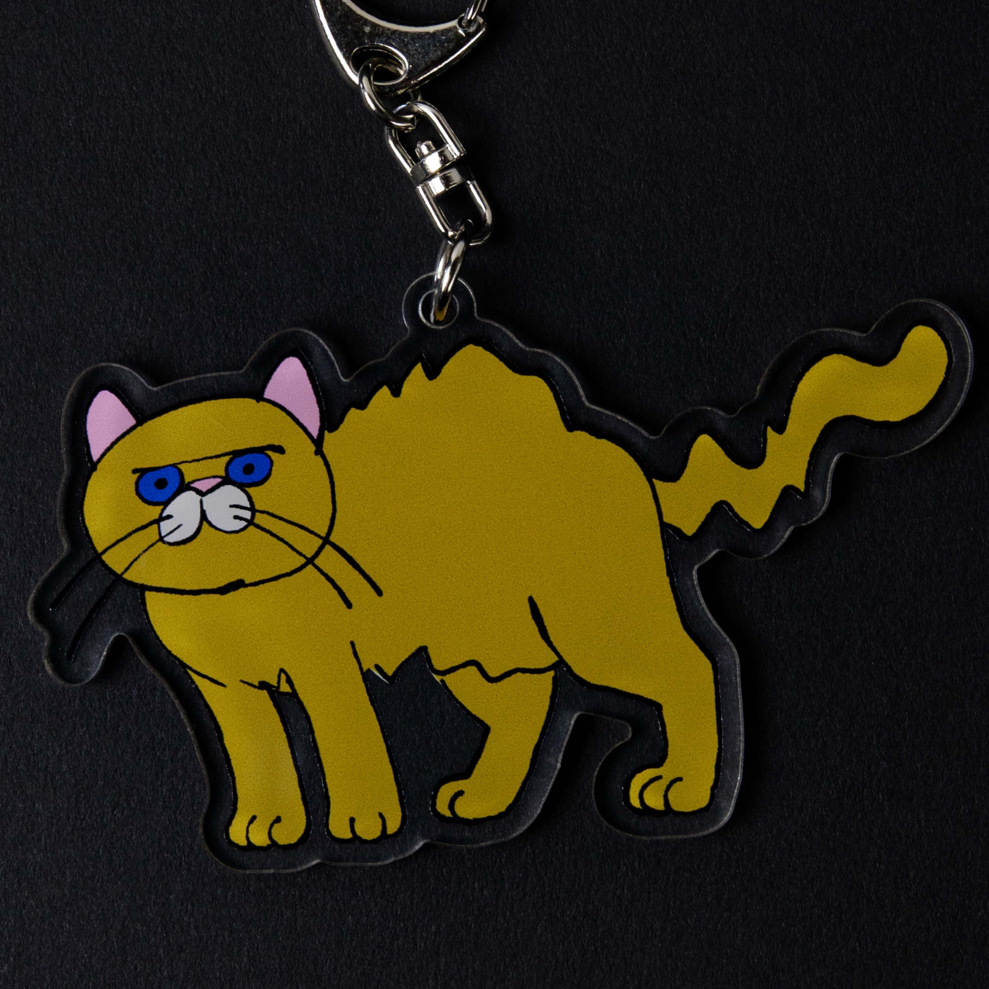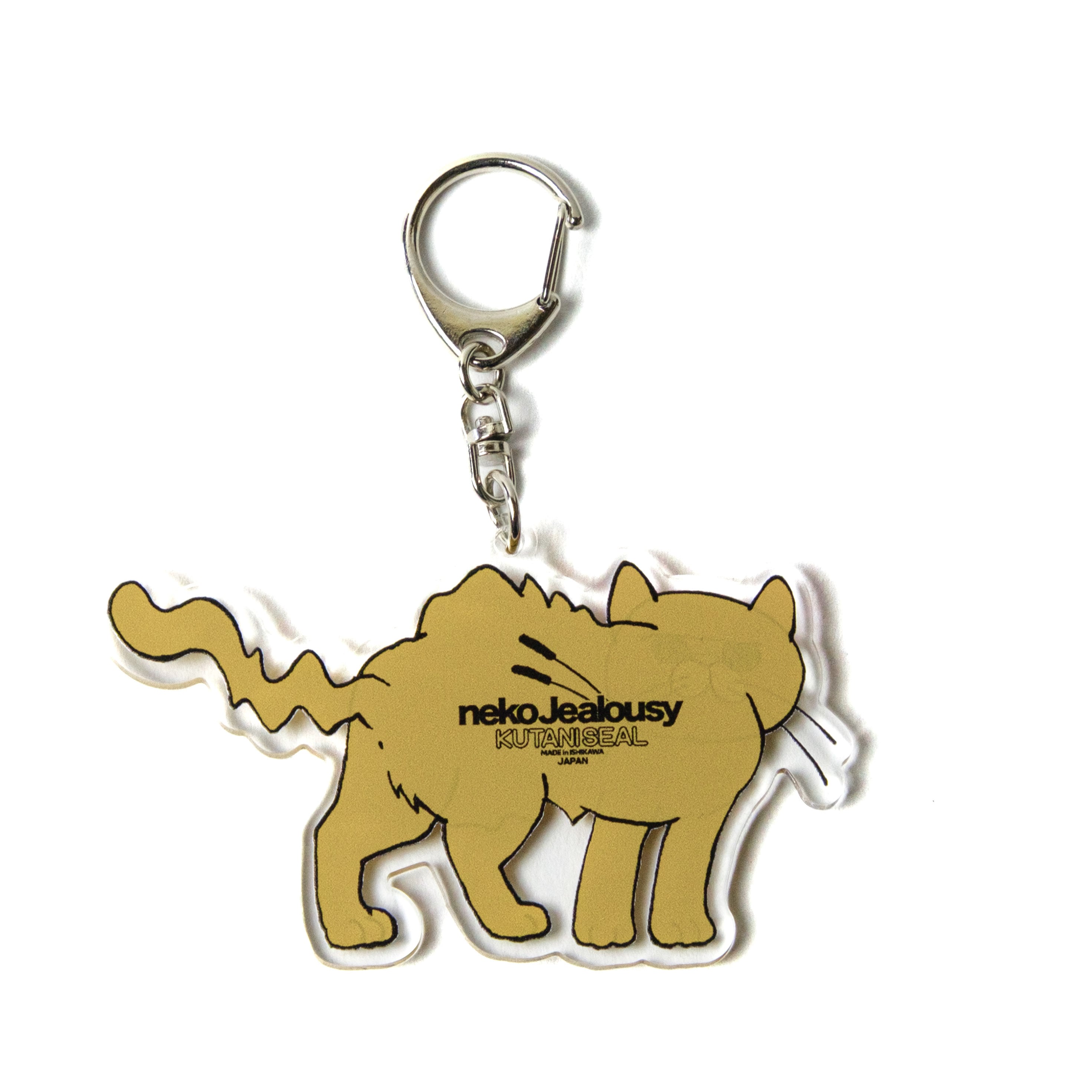 自由を楽しむ猫たちに嫉妬を感じているあなたへ、人気の「ネコ・ジェラシー」シリーズから新登場!こちらは愛らしいゴールドのアクリルキーホルダーです。バッグや鍵に取り付けやすいサイズです。興奮状態のゴールド色の猫がゆらゆらと動く姿をお楽しみください。